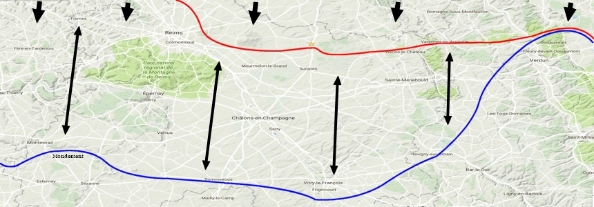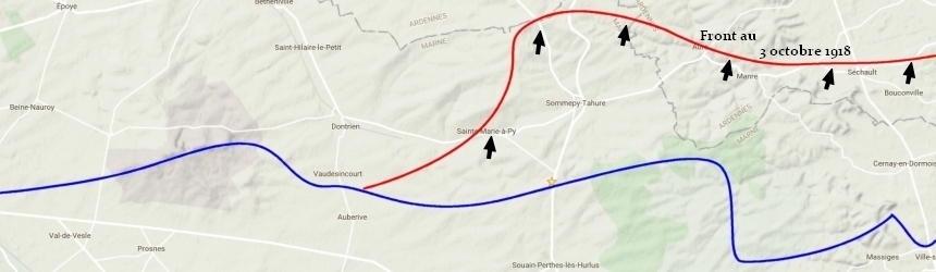 Les Allemands imitent la manoeuvre française de juillet 1918 mais ne la réussissent pas. Toutes les positions clefs sont prisent par débordement, les chars prennent d'assaut les positions trop organisées. Au soir les Français sont à Sommepy après avoir franchi cinq réseaux successifs de fils barbelés et fait 7000 prisonniers. Les Allemands contre attaque sur les flans de la percée sans résultat, le 27 Sommepy, Gratreuil tombent, le 29 Manre, Séchault, Bouconville et Servon, le 30 Aure et Marvaux. Le trois octobre le nord de Saint Marie tombe enfin et le quatre l'ennemie évacue les Monts de Moronvilliers pour ne par se trouver encerclé. Dès lors, les Allemands vont laisser des groupes de soldats se sacrifier à chaque bosquet ou chaque pli de terrain pour retarder l'avancée et permettre au plus gros de son armée de se replier. Le 11 novembre 1918, les alliers prenaient pieds sur les rives de la Meuse obligeant ses adversaires à demander l'Armistice, mettant fin à quatre années de la plus dure guerre que les temps ont connue.