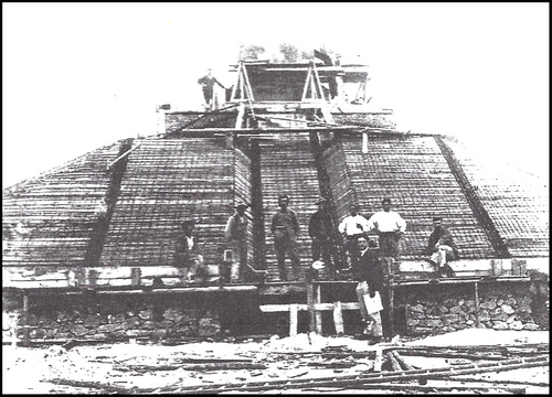 Construction du monument par un procédé innovant, le béton armé